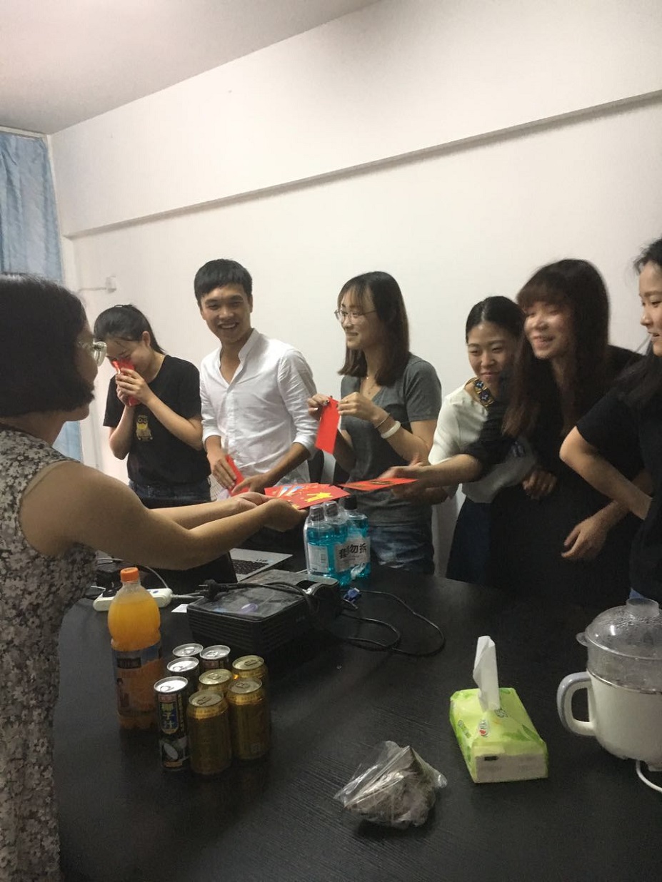 我们乐健的小伙伴真的很可爱,发我们大大的红包的时候跟大家说 红包的金额都不一样,每个人都去洗个手,很慎重的抽着每个红包,
