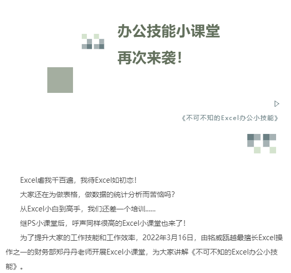 办公技能小课堂再次来袭丨《不可不知的Excel办公小技能》