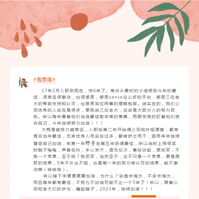 森瑟2022年优秀员工分享