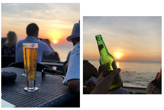 余晖落日,看着落日就像沉入大海一样,短暂却无比美妙和壮观,“人生得意须尽欢,莫使金樽空对日。