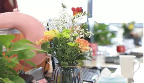 生活的美丽像细微的尘埃,落在墙角,落在门前,落在桌边。清早一进公司,迎接你的是柔美的鲜花。清晨的光洒在座位上,是不是有一种自带光环的feel?闻着花香,伴着微光,美好又充实的一天开始啦!是谁说工作使人垂头丧气,要我说工作使人朝气蓬勃!