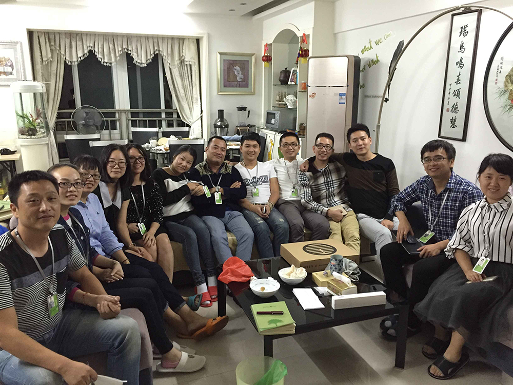为了最有效最大的触及产品,市场,客户,我们邀请了4个一线销售事业部(外贸B2B,外贸B2C,内贸B2B,内贸B2C),支持部,财务部,以及今年新成立的推广部去参与讨论.同时,为了更好地让大家放松参与,我们的头脑风暴在老麦家中进行。
