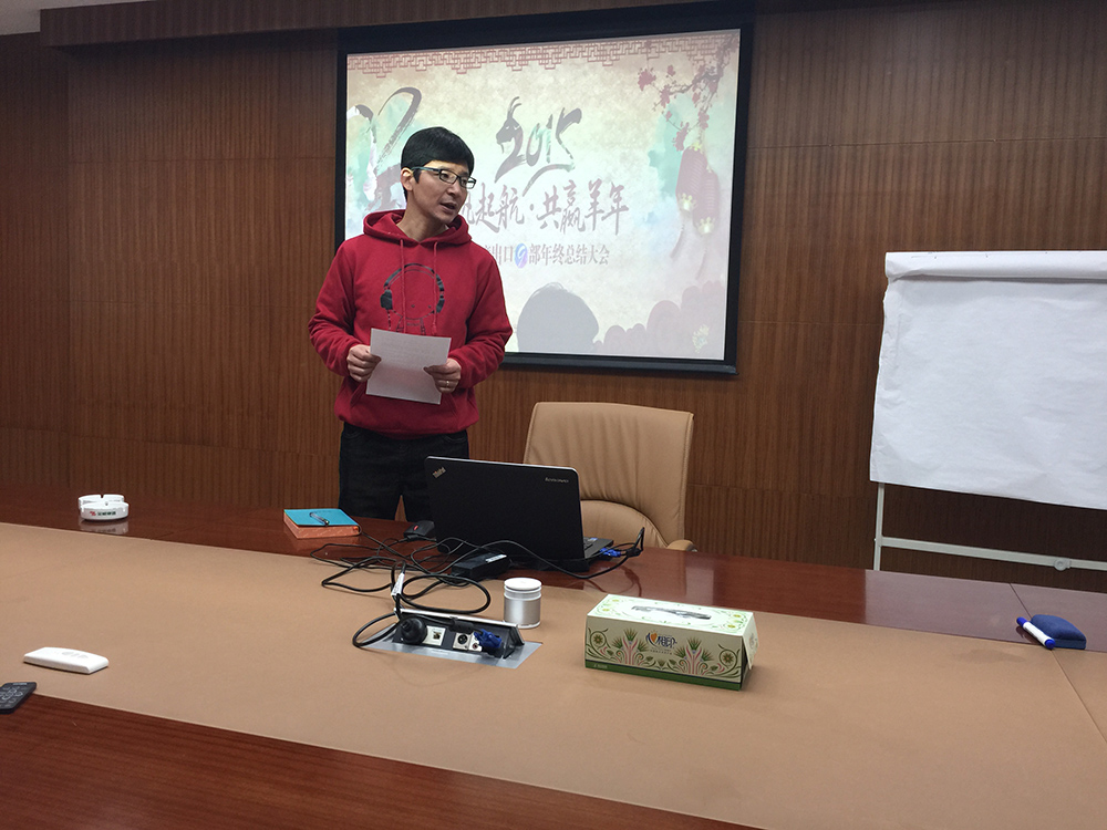 经理发言过后,各个小组依次对2014年进行了个人总结和2015年的规划展望,同时各个组长对于本组进行了整体的总结和规划,让我们对于2015的充满期待!精美的PPT和大家日渐提高的演讲水平,大会进展地如火如荼。